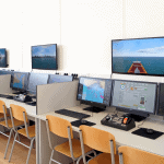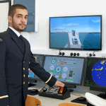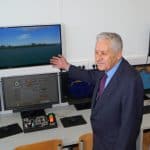 - Ο τελειόφοιτος σπουδαστής Ιωάννης Κοσκινάς μπροστά στον προσομοιωτή γέφυρας.