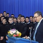 Πραγματοποιήθηκε εχθές Τετάρτη, 5 Δεκεμβρίου 2018, η υποδοχή των 78 πρωτοετών σπουδαστών για το τρέχον ακαδημαικό έτος στην Ακαδημία Εμπορικού Ναυτικού της Χίου. Τους σπουδαστές καλωσόρισε ο Μητροπολίτης Χίου, Ψαρών και Οινουσσών, κ. Μάρκος, με την ευχή η ελληνική σημαία να υψωθεί σε όλα τα ελληνόκτητα πλοία.