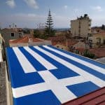 Πιο συγκεκριμένα, οι σπουδαστές χάραξαν και έβαψαν γαλανόλευκη την ταράτσα κτηρίου της Ακαδημίας Εμπορικού Ναυτικού Χίου, μετατρέποντάς την σε μία τεράστια ελληνική σημαία συνολικής επιφάνειας 110 τ.μ., η οποία είναι ορατή από ψηλά.