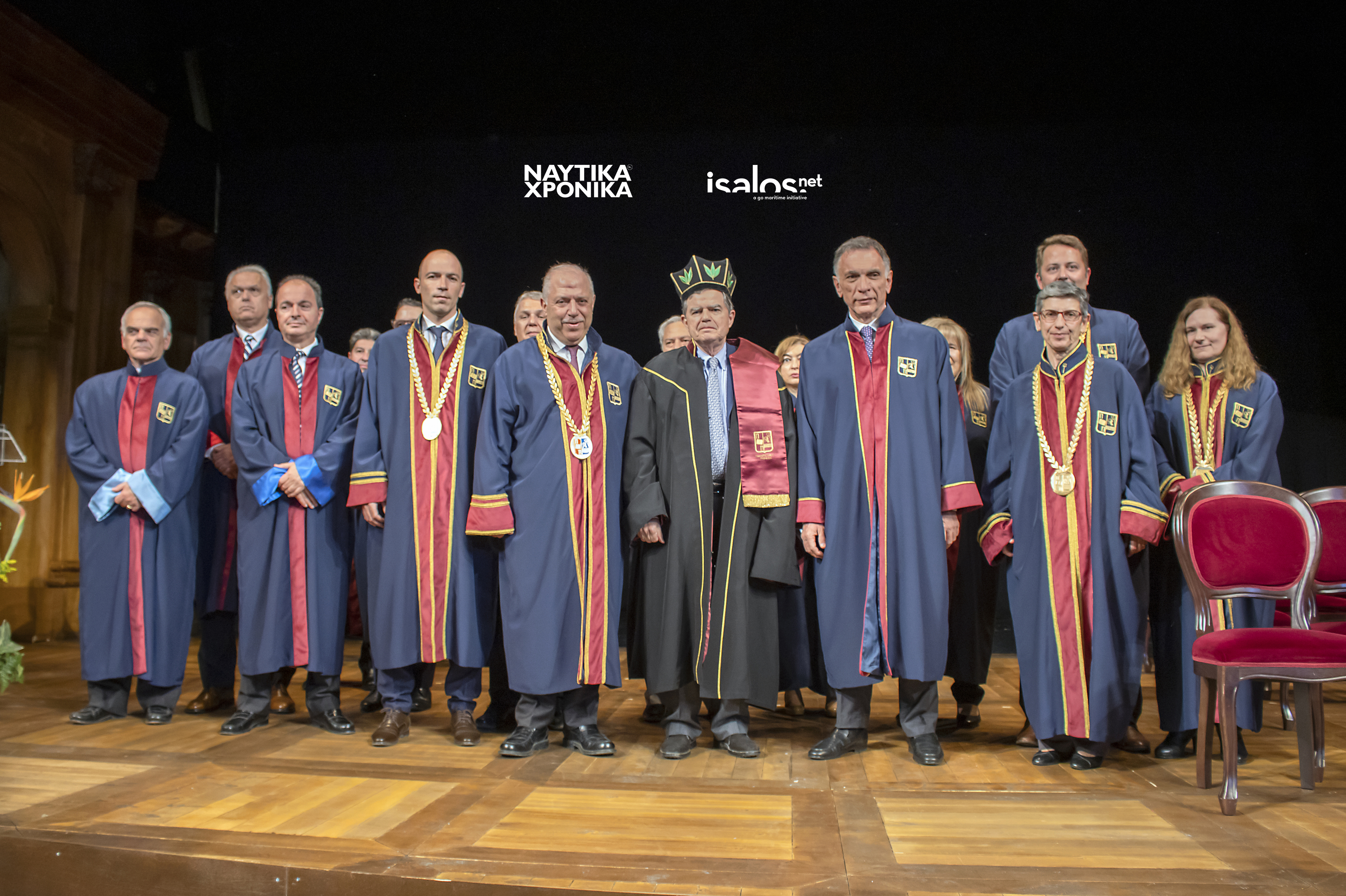 Ο κοσμήτορας της Σχολής, καθ. Άγγελος Παντουβάκης, επισήμανε στην ομιλία του «την αριστεύουσα μετριοπάθεια του τιμωμένου, για τη δημιουργία και την αξιοποίηση του μέτρου προς όφελος των άλλων». Επιπρόσθετα, ο κοσμήτορας συνεχάρη τον τιμώμενο για τη μετριοπάθεια και τη σεμνότητα της ζωής του και ευχήθηκε να βρει συνεχιστές της προσπάθειάς του, της προσπάθειάς του για την καθιέρωση του «παν μέτρον άριστον». Παράλληλα ευχαρίστησε τους συναδέλφους του στη Σύγκλητο για την αποδοχή της πρότασης του Τμήματος Ναυτιλιακών Σπουδών.