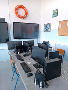 Παράλληλα με τους προσομοιωτές το Γυμνάσιο και το Λύκειο των Οινουσσών εξοπλίστηκαν με έξι (6) νέους διαδραστικούς πίνακες τελευταίας τεχνολογίας, οι οποίοι θα συμβάλλουν περαιτέρω στην αναβάθμιση της εκπαιδευτικής διδασκαλίας.