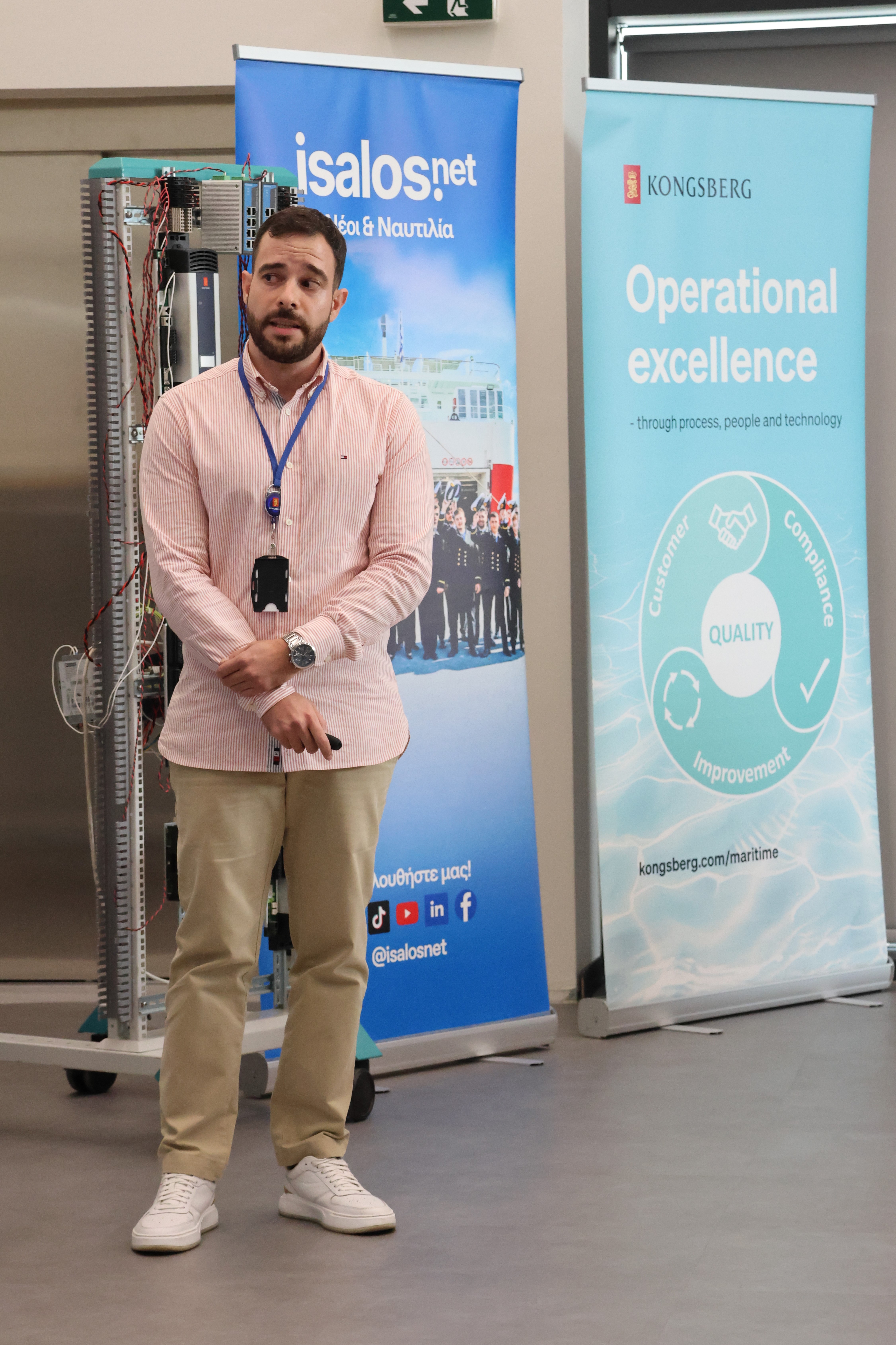 Στη συνέχεια, η παρουσίαση «Introduction to Automation & Control Systems» πραγματοποιήθηκε από τον κ. Μερκούριο Μπαϊράμη, Training Instructor, ο οποίος ανέλυσε τις λειτουργίες, τις δυνατότητες και τα πλεονεκτήματα των σύγχρονων συστημάτων αυτοματισμού της Kongsberg.