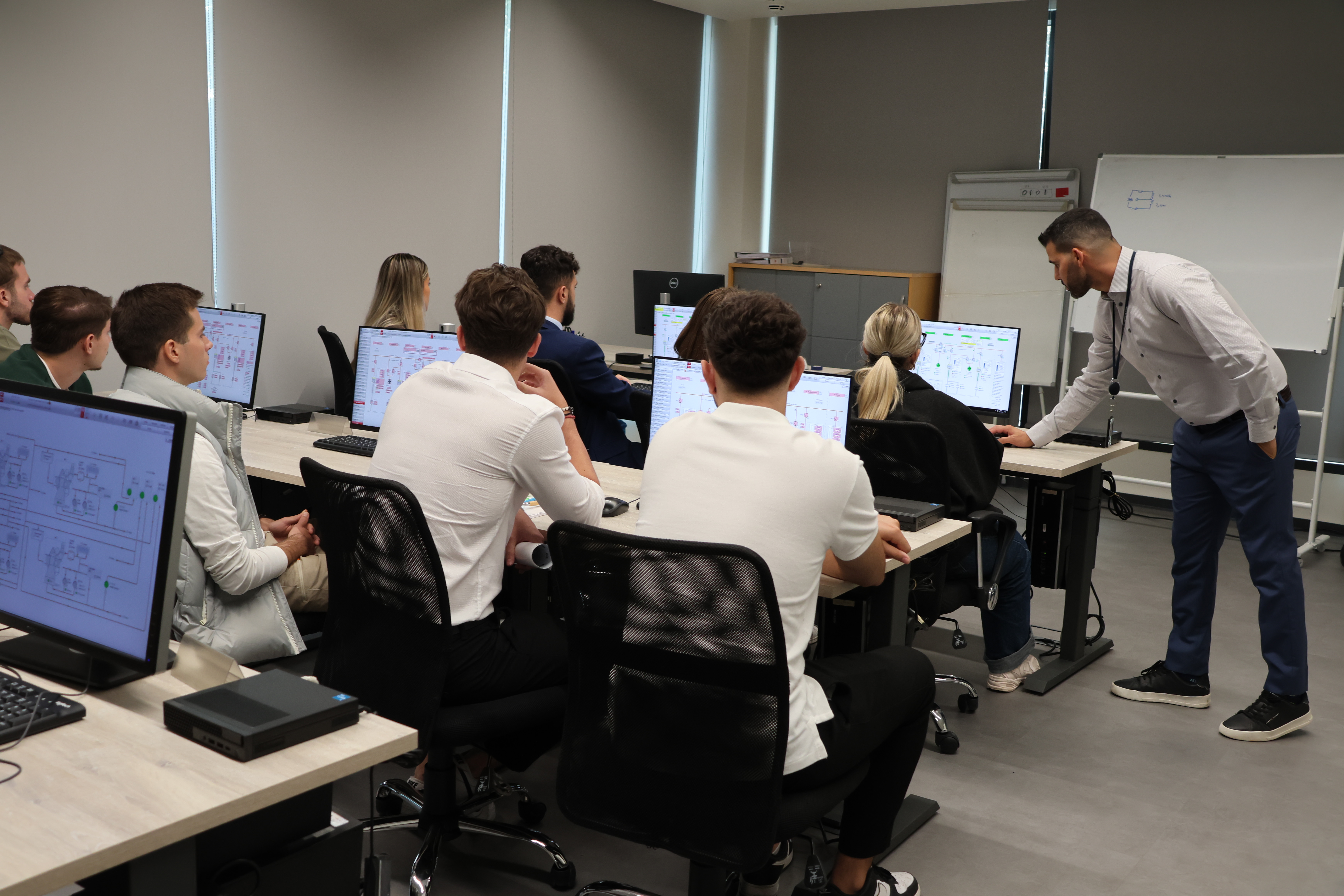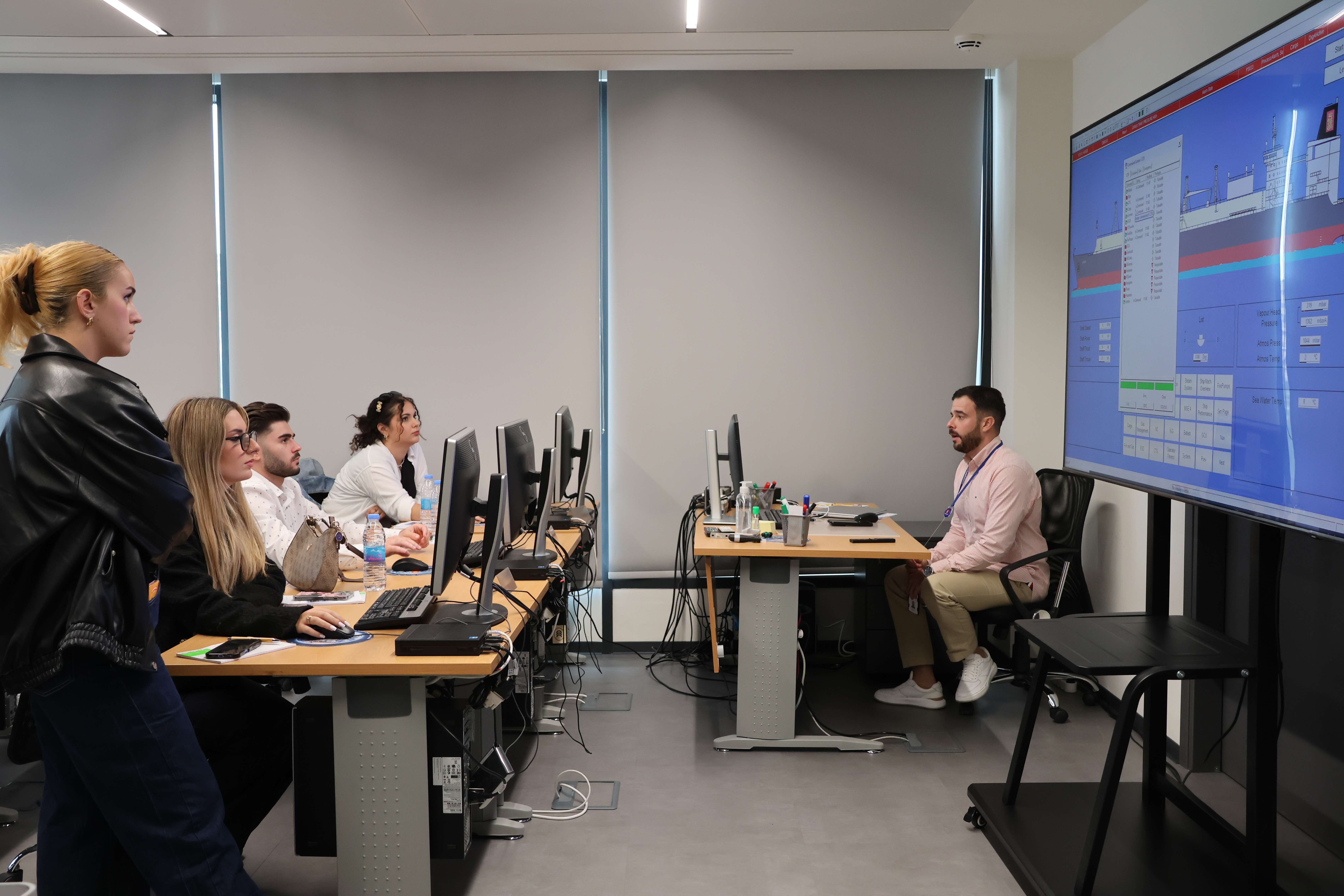Χάρη στη θερμή φιλοξενία της Kongsberg Maritime Hellas, οι συμμετέχοντες/ουσες γνώρισαν τεχνολογίες αιχμής που εφαρμόζονται αυτή τη στιγμή στη ναυτιλιακή βιομηχανία, μέσα από μια σειρά εξειδικευμένων παρουσιάσεων και πρακτικών επιδείξεων. Οι θεματικές τους επικεντρώθηκαν σε συστήματα πρόωσης, αυτοματισμών και ελέγχου, με έμφαση στην αποδοτικότητα, στην ασφάλεια και στη βιωσιμότητα των εμπορικών πλοίων του παγκόσμιου στόλου.