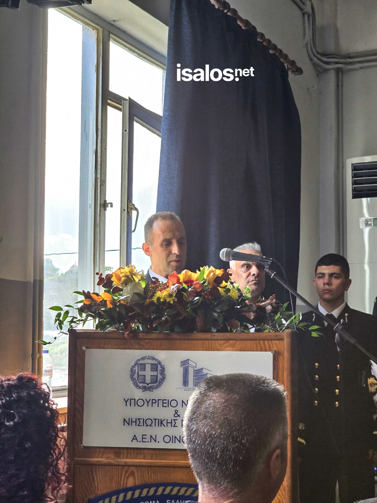 «Σας καλωσορίζουμε με υπερηφάνεια στο πετροκάραβο του Αιγαίου, και χαιρετίζουμε συναγαλλόμενοι με τους γονείς σας και τις οικογένειές σας την απόφασή σας να προσέλθετε στον καθαγιασμένο από τις θυσίες των ναυτικών μας Ιερό τούτο τόπο της Ναυτοσύνης. Μια απόφαση, που μας γεμίζει ικανοποίηση, αλλά κι ευθύνη»…«Θέλω να σας διαβεβαιώσω ότι ψυχή τε και καρδία θα βρίσκομαι και θα βρισκόμαστε με τους συνεργάτες μου κι όλο το οινουσσιακό ναυτιλιακό δυναμικό στο πλευρό σας γιατί ο αγώνας σας μας εμπνέει και τα ιδανικά σας νοηματοδοτούν την ζωή της Αιγνούσας. Εύχομαι μια λαμπρή σταδιοδρομία με τη χαρά και την ευχαρίστηση να μπαίνετε σε λιμένας πρωτοειδομένους και να μάθετε πολλά από τους σπουδαγμένους».