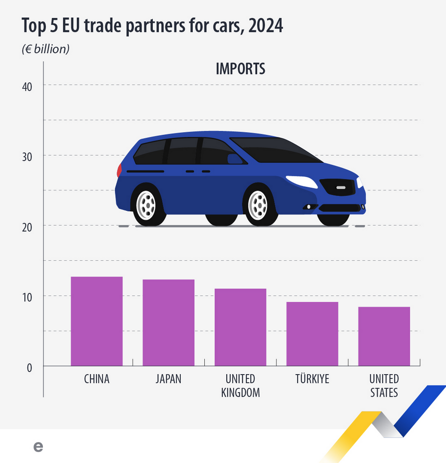 Ποιες είναι, όμως, οι κορυφαίες χώρες από τις οποίες η ΕΕ εισάγει αυτοκίνητα;