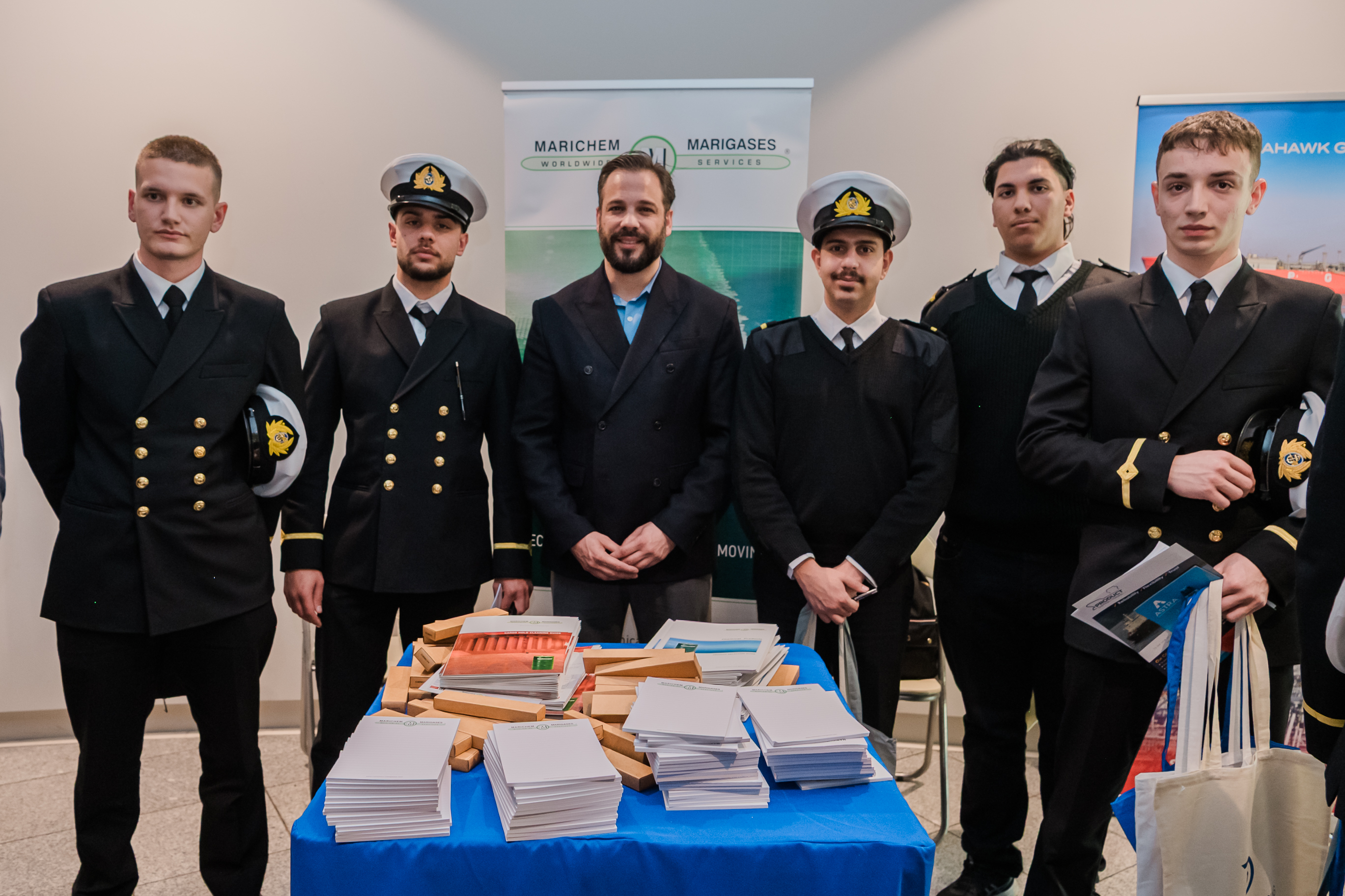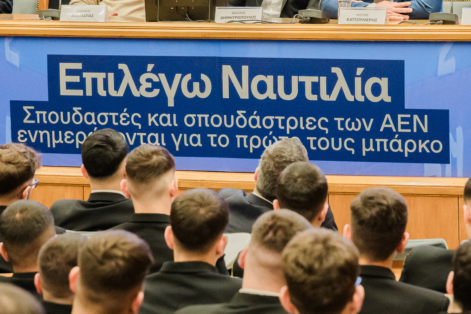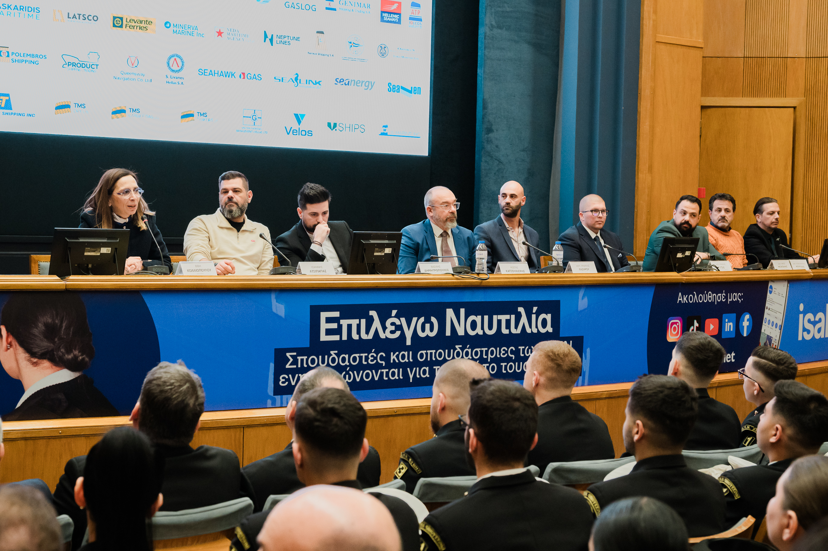 Στο πλαίσιο της ημερίδας «Επιλέγω Ναυτιλία», πραγματοποιήθηκε ένα πάνελ συζήτησης με θέμα το «Πρώτο εκπαιδευτικό ταξίδι», στο οποίο συμμετείχαν εν ενεργεία Αξιωματικοί Εμπορικού Ναυτικού, αλλά και εκπρόσωποι της ευρύτερης ναυτιλιακής κοινότητας. Οι σπουδαστές και σπουδάστριες, τόσο των Σχολών Πλοιάρχων όσο και των Σχολών Μηχανικών, των ΑΕΝ που συμμετείχαν στην εκδήλωση, ενημερώθηκαν με σαφή τρόπο για το πρώτο τους εκπαιδευτικό ταξίδι ενώ έλαβαν γνώση συνολικά για τις ιδιαιτερότητες και προκλήσεις του ναυτικού επαγγέλματος.