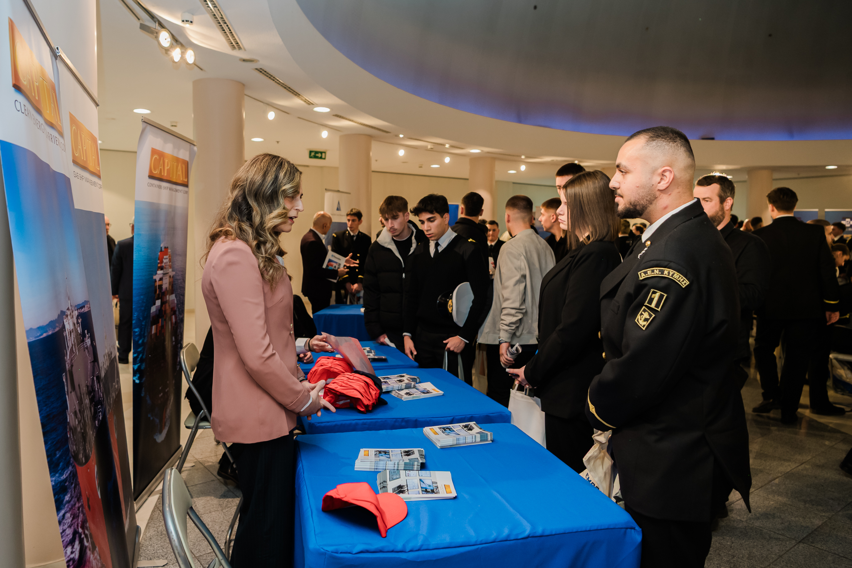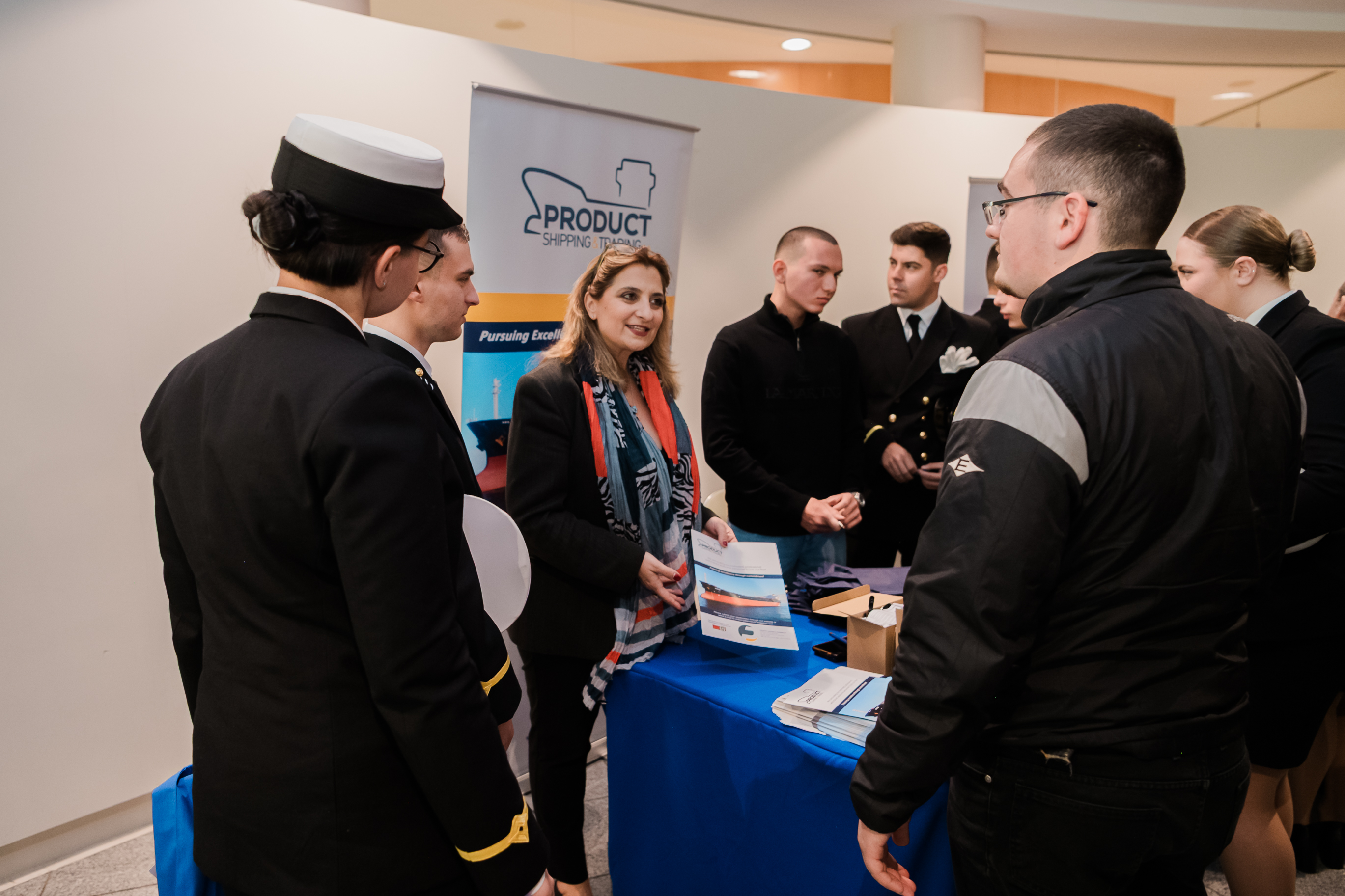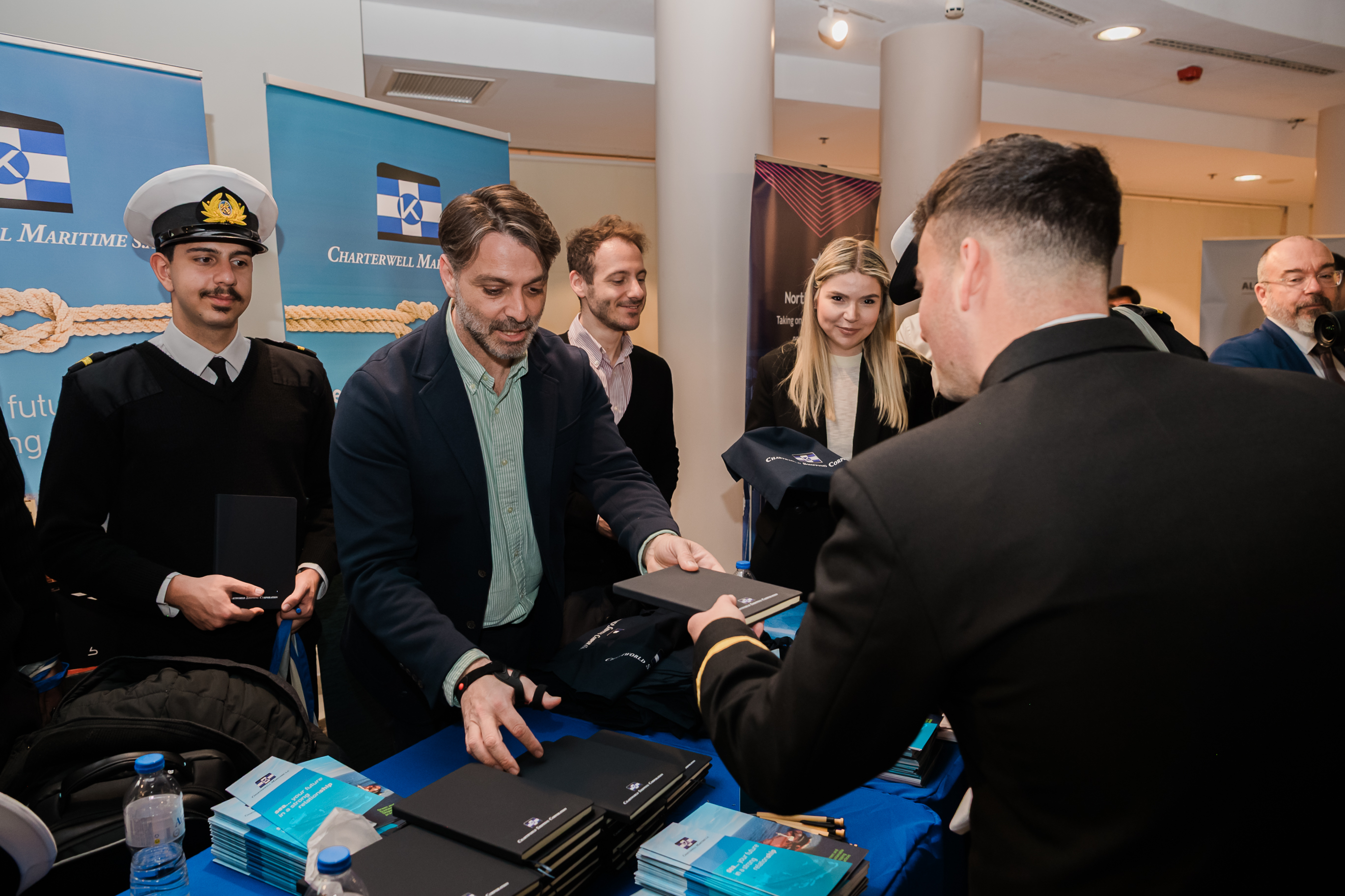 Στο πλαίσιο της ημερίδας «Επιλέγω Ναυτιλία», πραγματοποιήθηκε ένα πάνελ συζήτησης με θέμα το «Πρώτο εκπαιδευτικό ταξίδι», στο οποίο συμμετείχαν εν ενεργεία Αξιωματικοί Εμπορικού Ναυτικού, αλλά και εκπρόσωποι της ευρύτερης ναυτιλιακής κοινότητας. Οι σπουδαστές και σπουδάστριες, τόσο των Σχολών Πλοιάρχων όσο και των Σχολών Μηχανικών, των ΑΕΝ που συμμετείχαν στην εκδήλωση, ενημερώθηκαν με σαφή τρόπο για το πρώτο τους εκπαιδευτικό ταξίδι ενώ έλαβαν γνώση συνολικά για τις ιδιαιτερότητες και προκλήσεις του ναυτικού επαγγέλματος.