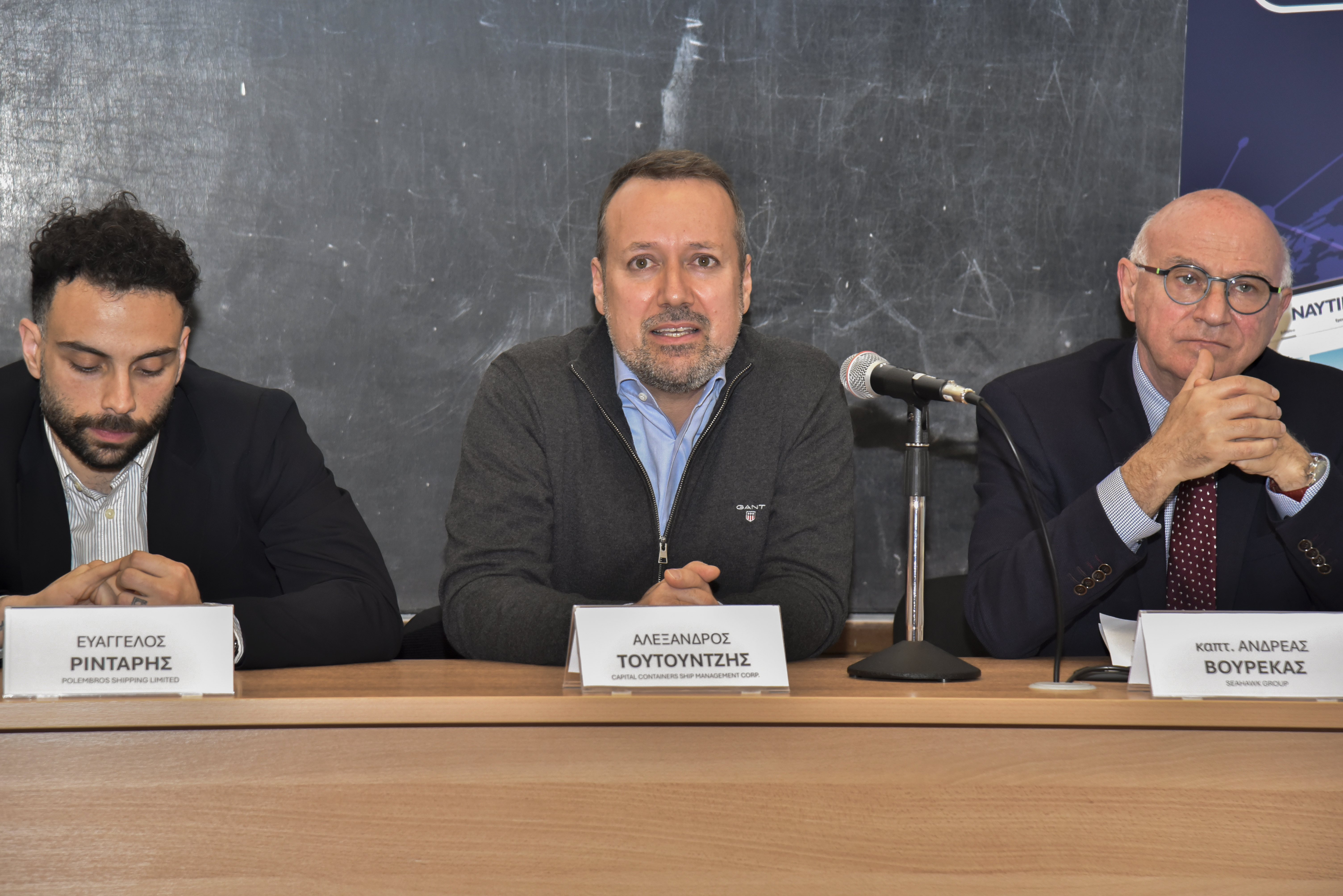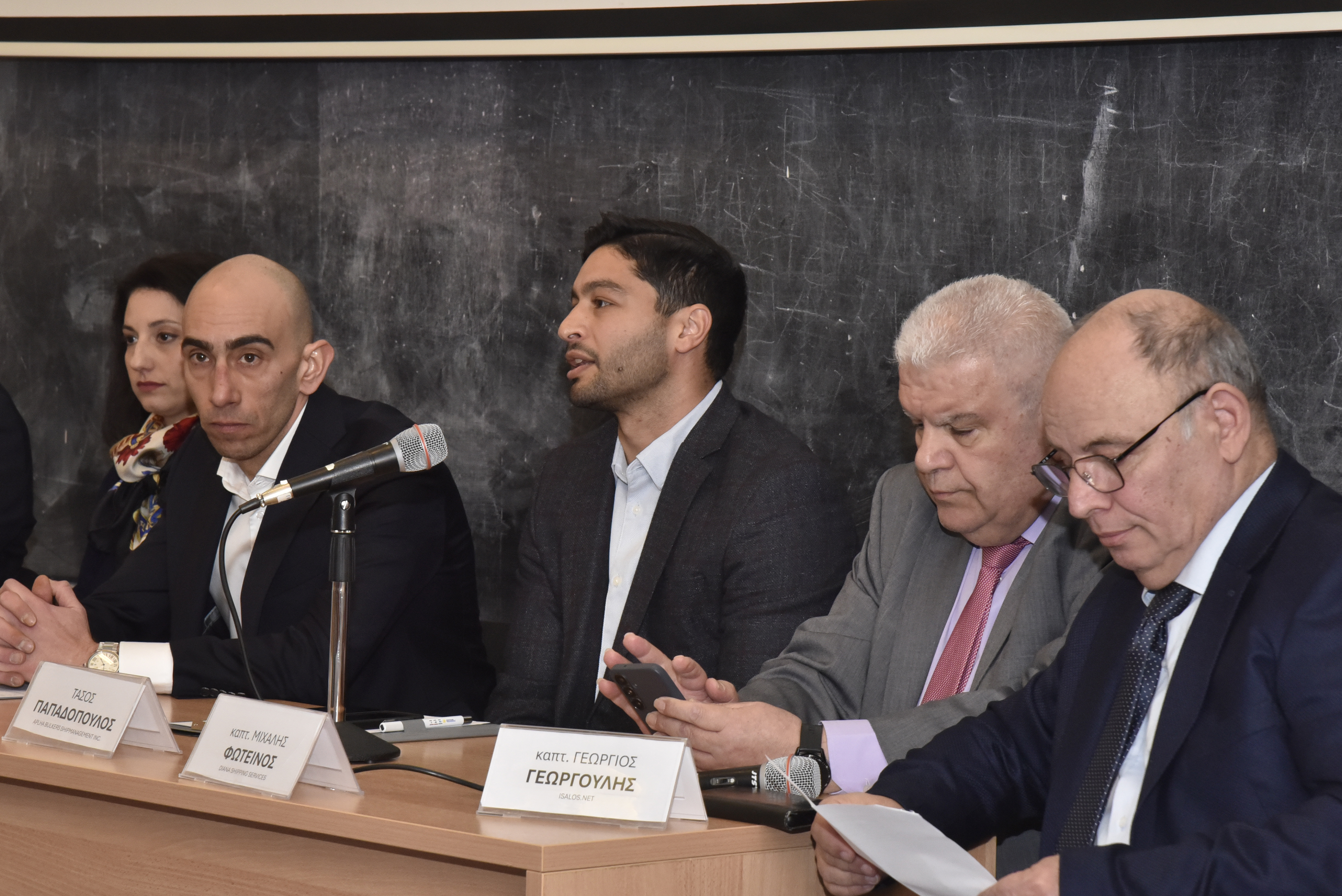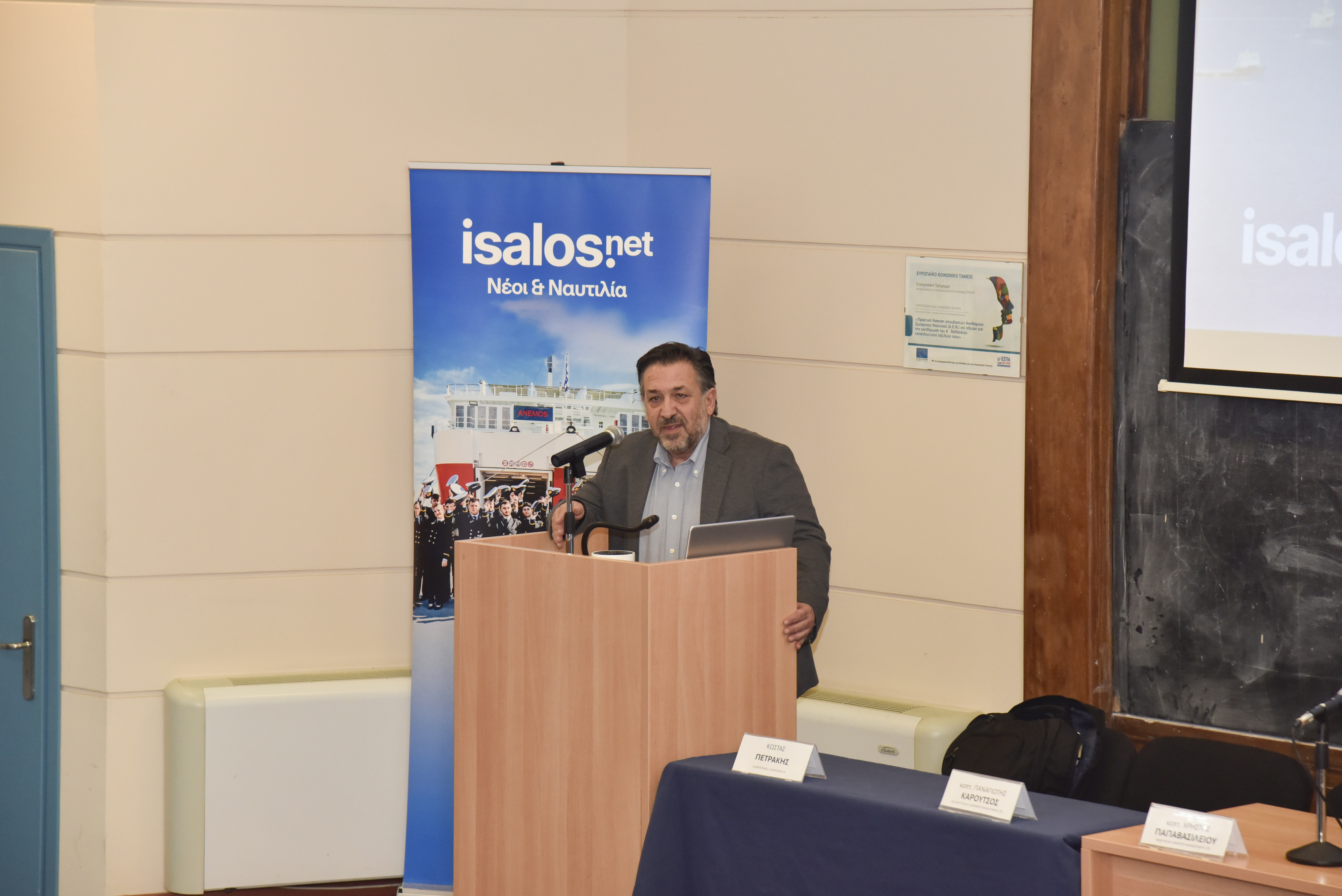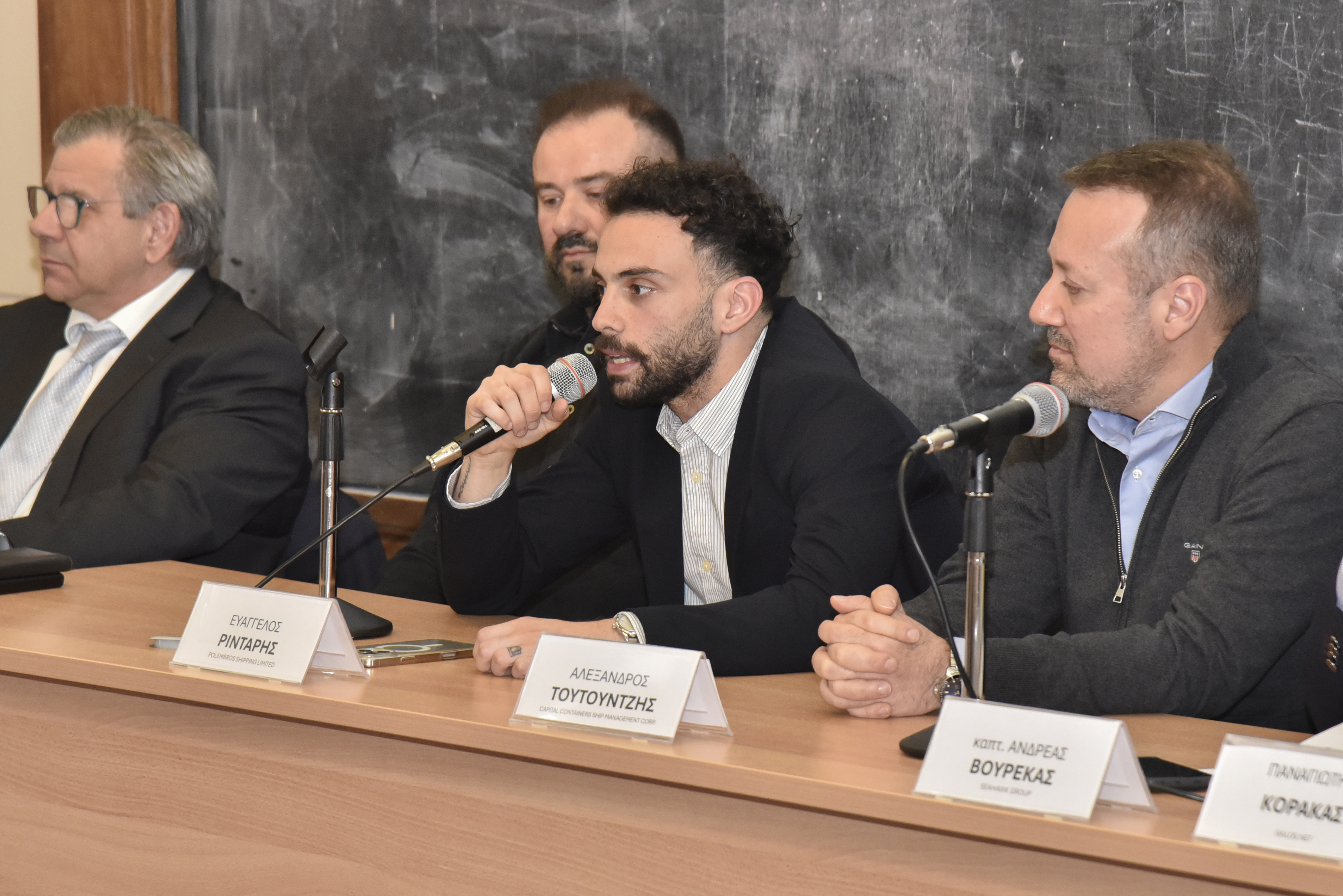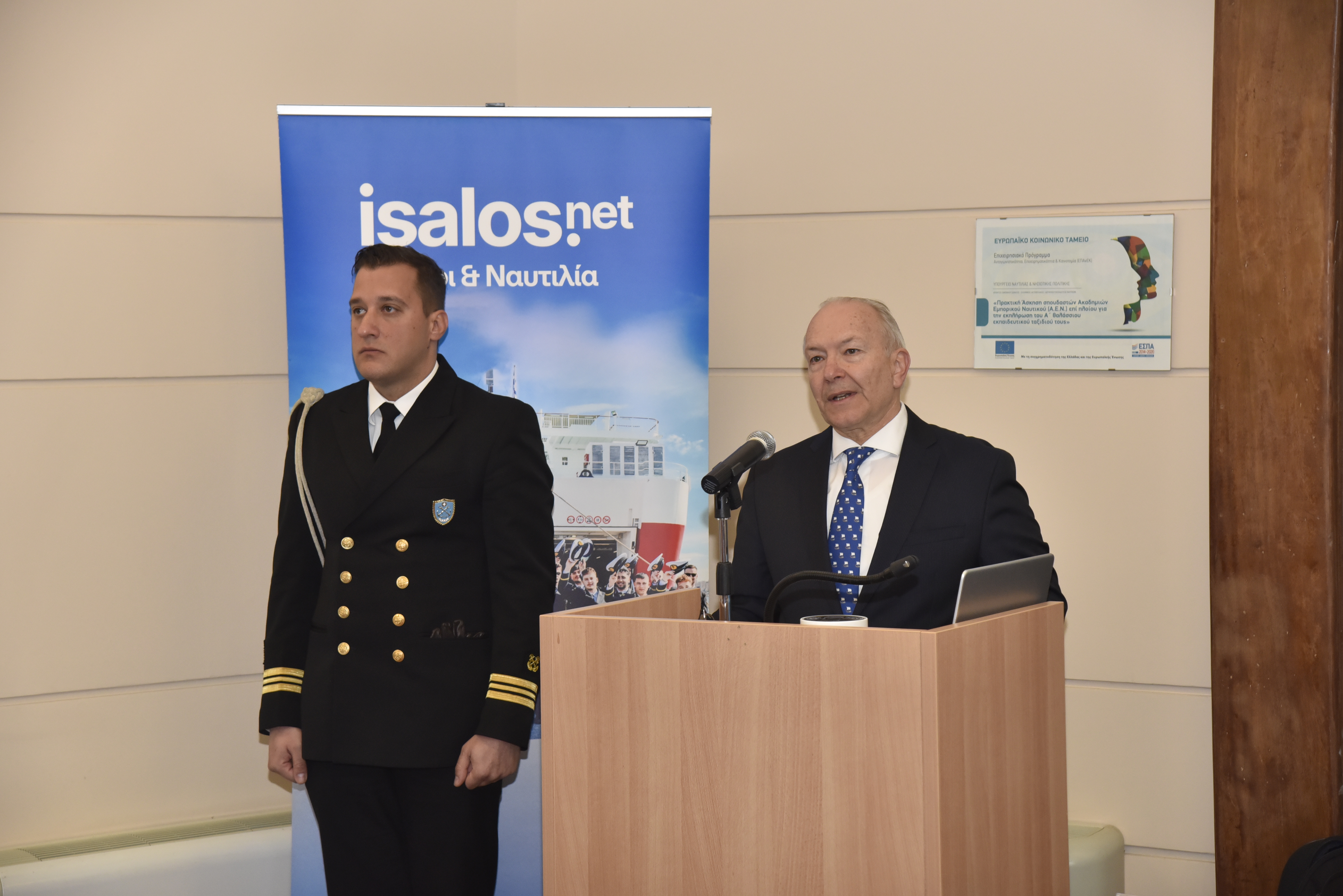 Εναρκτήριους χαιρετισμούς πραγματοποίησαν επίσης ο Διοικητής της ΑΕΝ Ασπροπύργου, Αρχιπλοίαρχος ΛΣ Ιωάννης Μυτιληναίος, ο Διευθυντής της Σχολής Πλοιάρχων, κ. Δημήτρης Αρσενόπουλος, ο Διευθυντής της Σχολής Μηχανικών, κ. Νίκος Φραγκιαδάκης, και ο Δρ Ηλίας Γ. Μπίσιας, Επίκουρος Καθηγητής του Τμήματος Ναυτιλίας και Επιχειρηματικών Υπηρεσιών του Πανεπιστημίου Αιγαίου και ιδρυτής της Isalos.net.