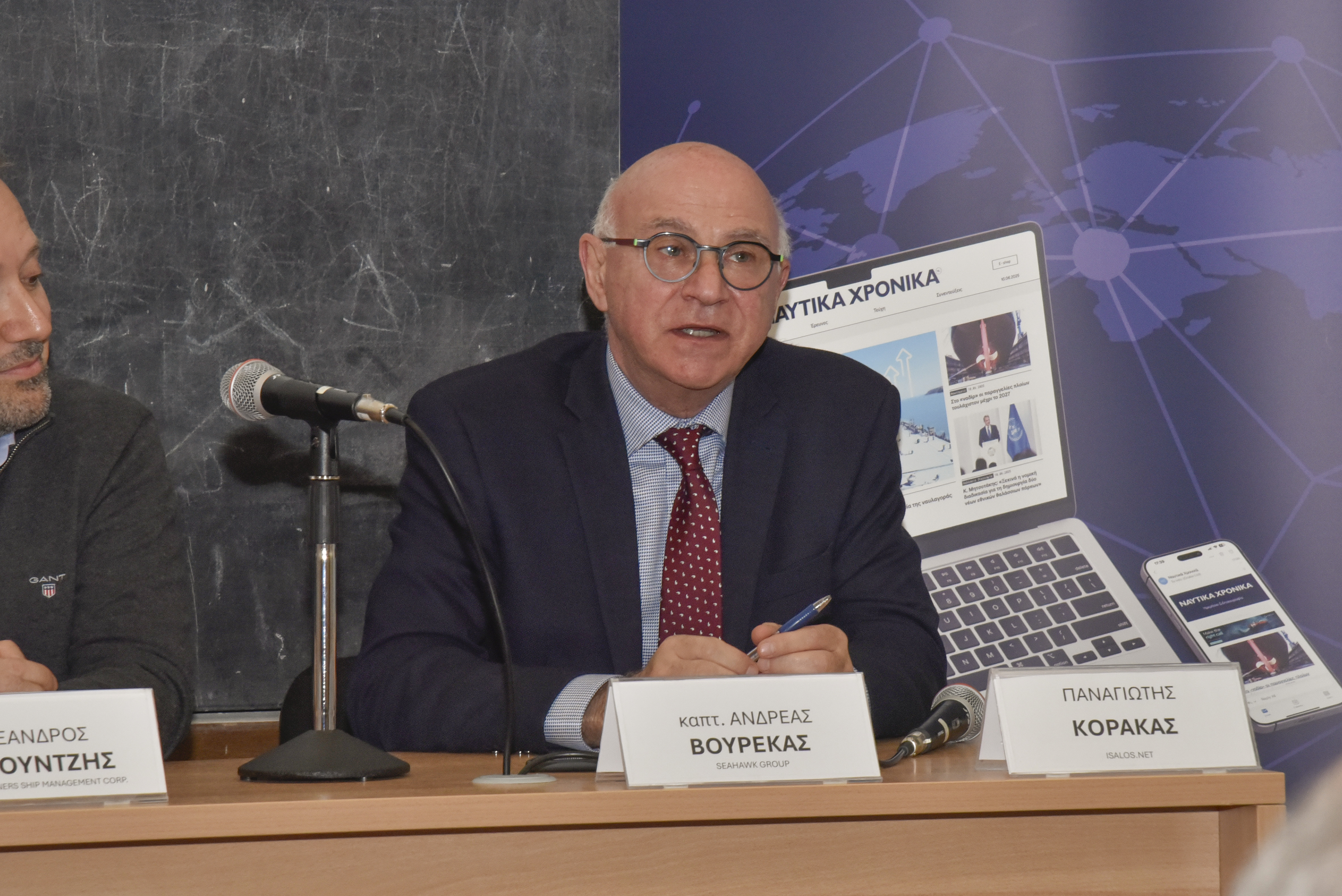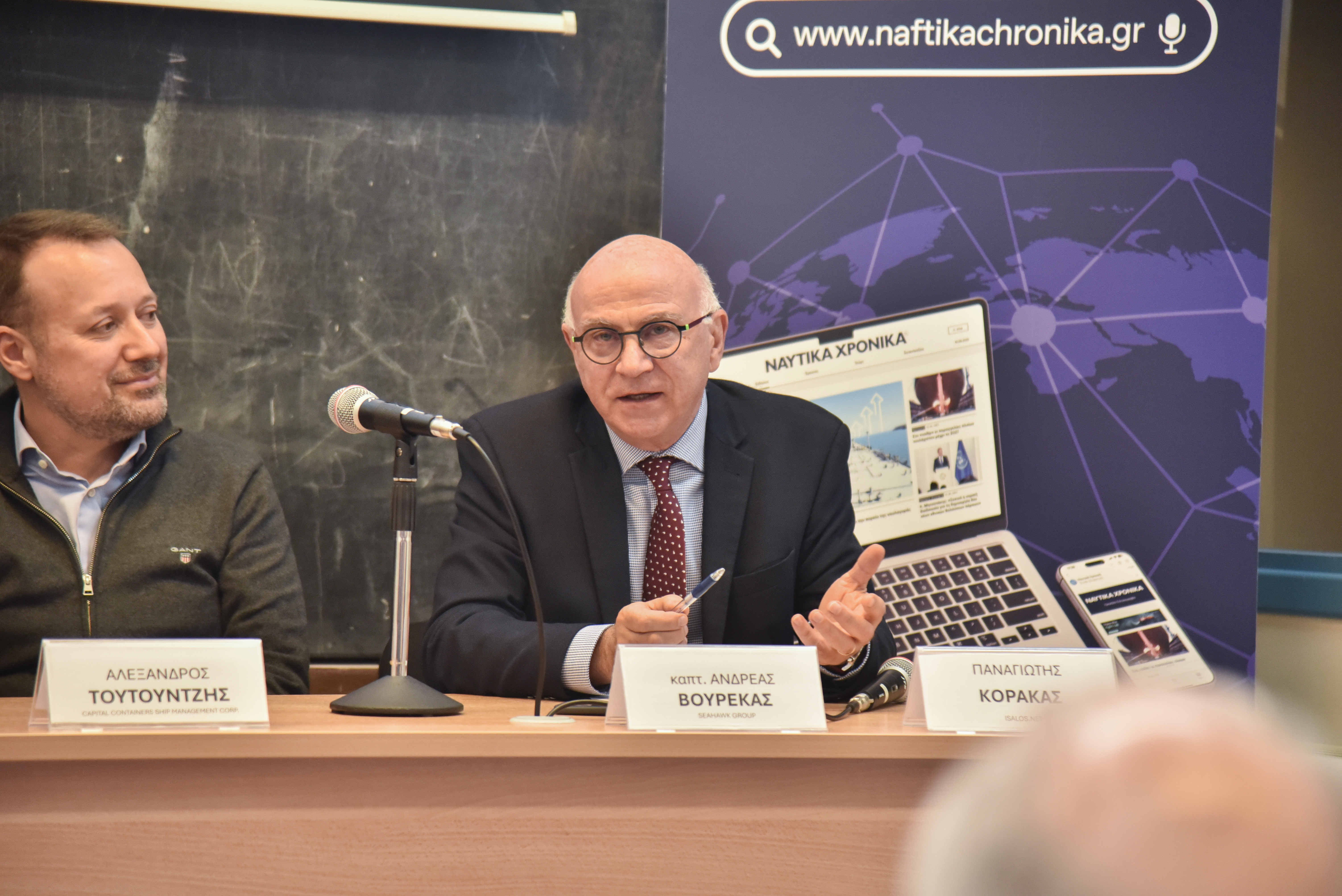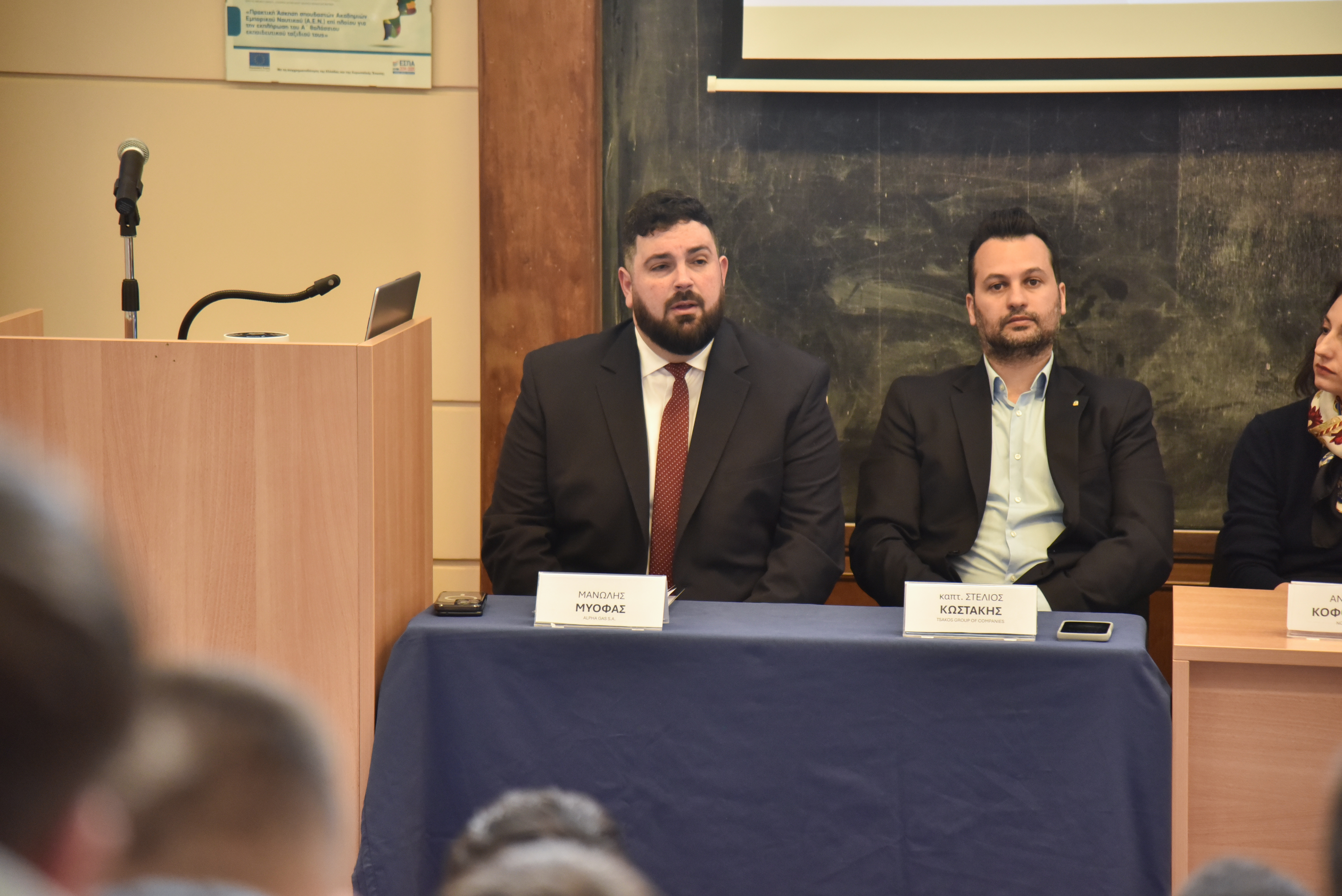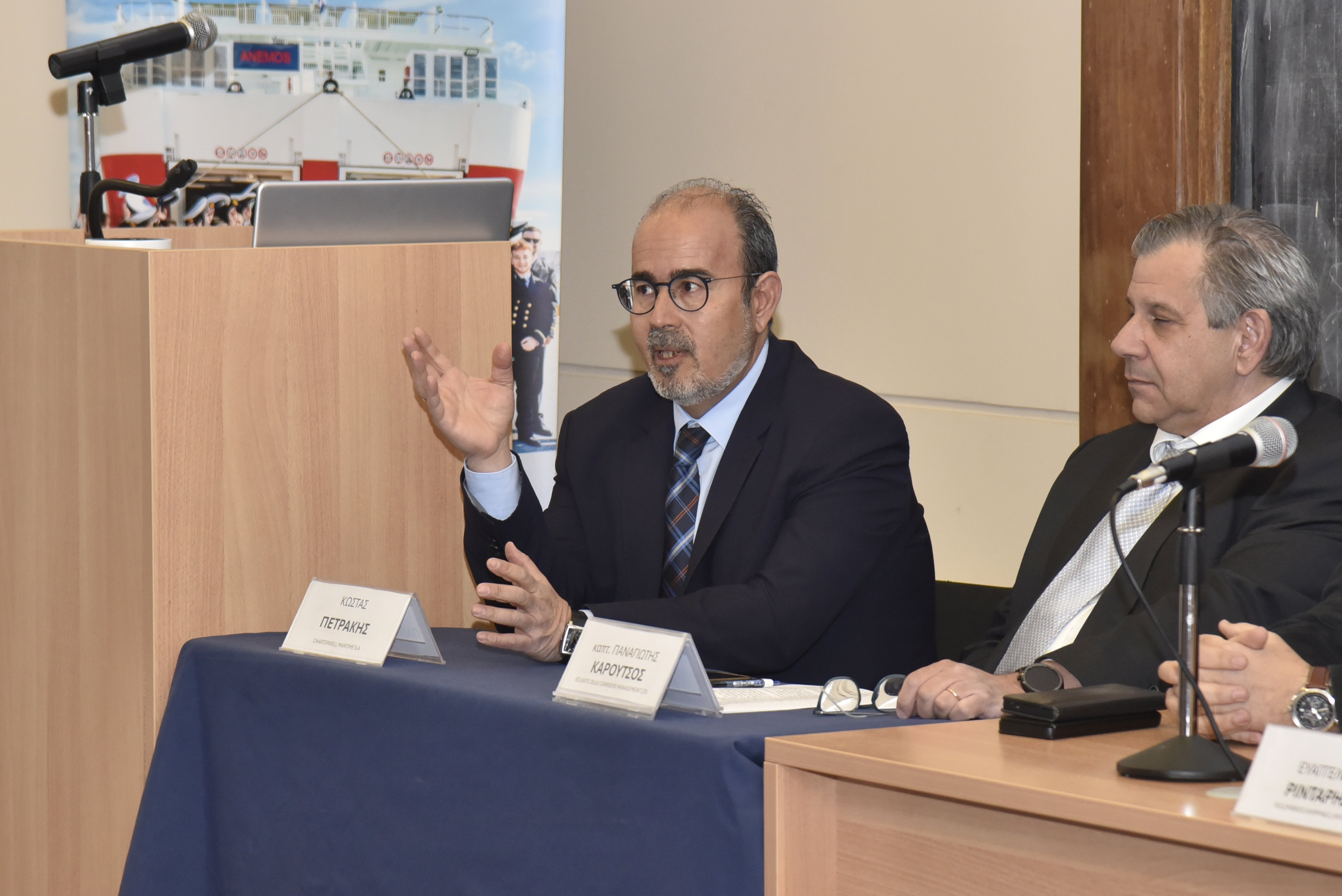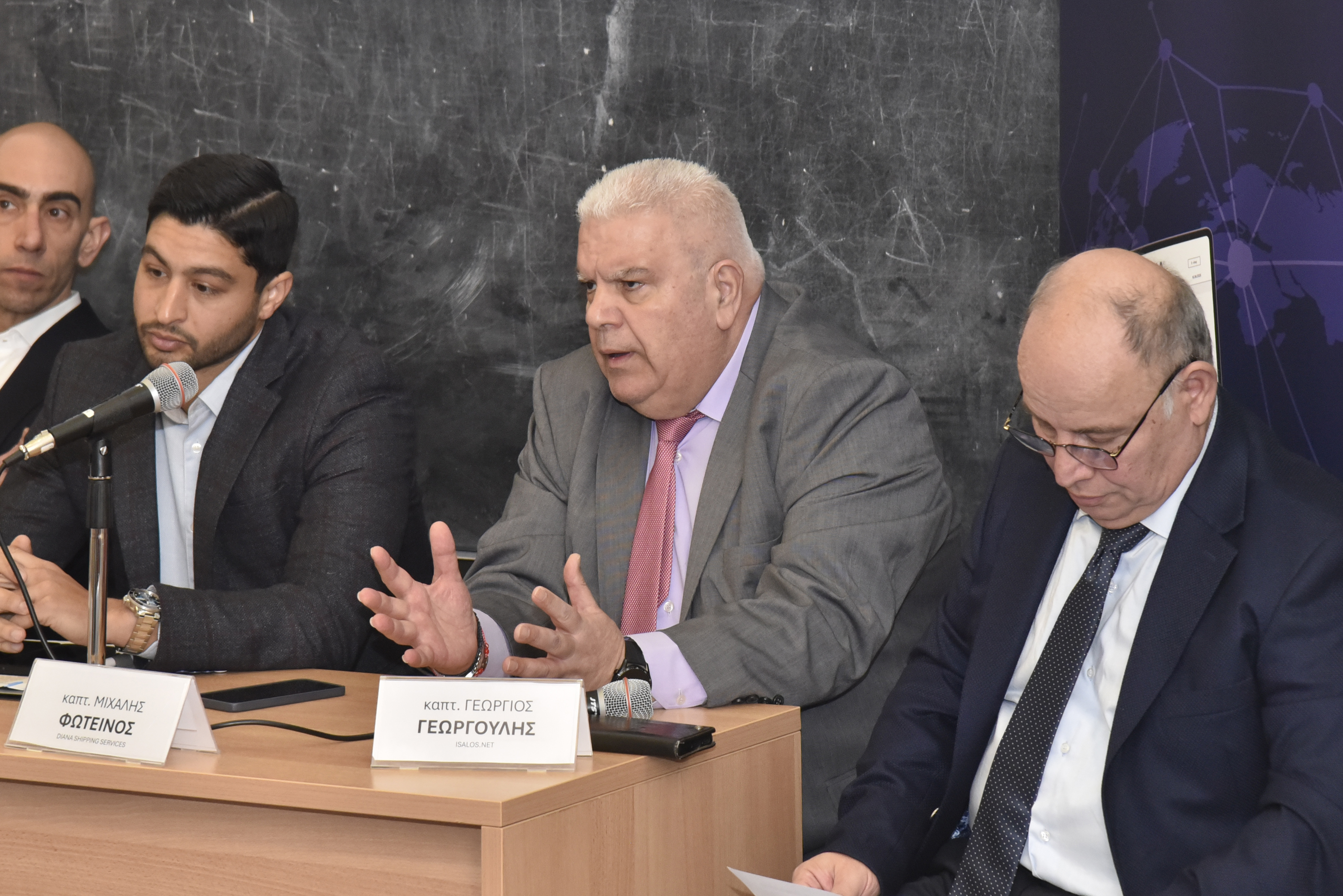 Εναρκτήριους χαιρετισμούς πραγματοποίησαν επίσης ο Διοικητής της ΑΕΝ Ασπροπύργου, Αρχιπλοίαρχος ΛΣ Ιωάννης Μυτιληναίος, ο Διευθυντής της Σχολής Πλοιάρχων, κ. Δημήτρης Αρσενόπουλος, ο Διευθυντής της Σχολής Μηχανικών, κ. Νίκος Φραγκιαδάκης, και ο Δρ Ηλίας Γ. Μπίσιας, Επίκουρος Καθηγητής του Τμήματος Ναυτιλίας και Επιχειρηματικών Υπηρεσιών του Πανεπιστημίου Αιγαίου και ιδρυτής της Isalos.net.