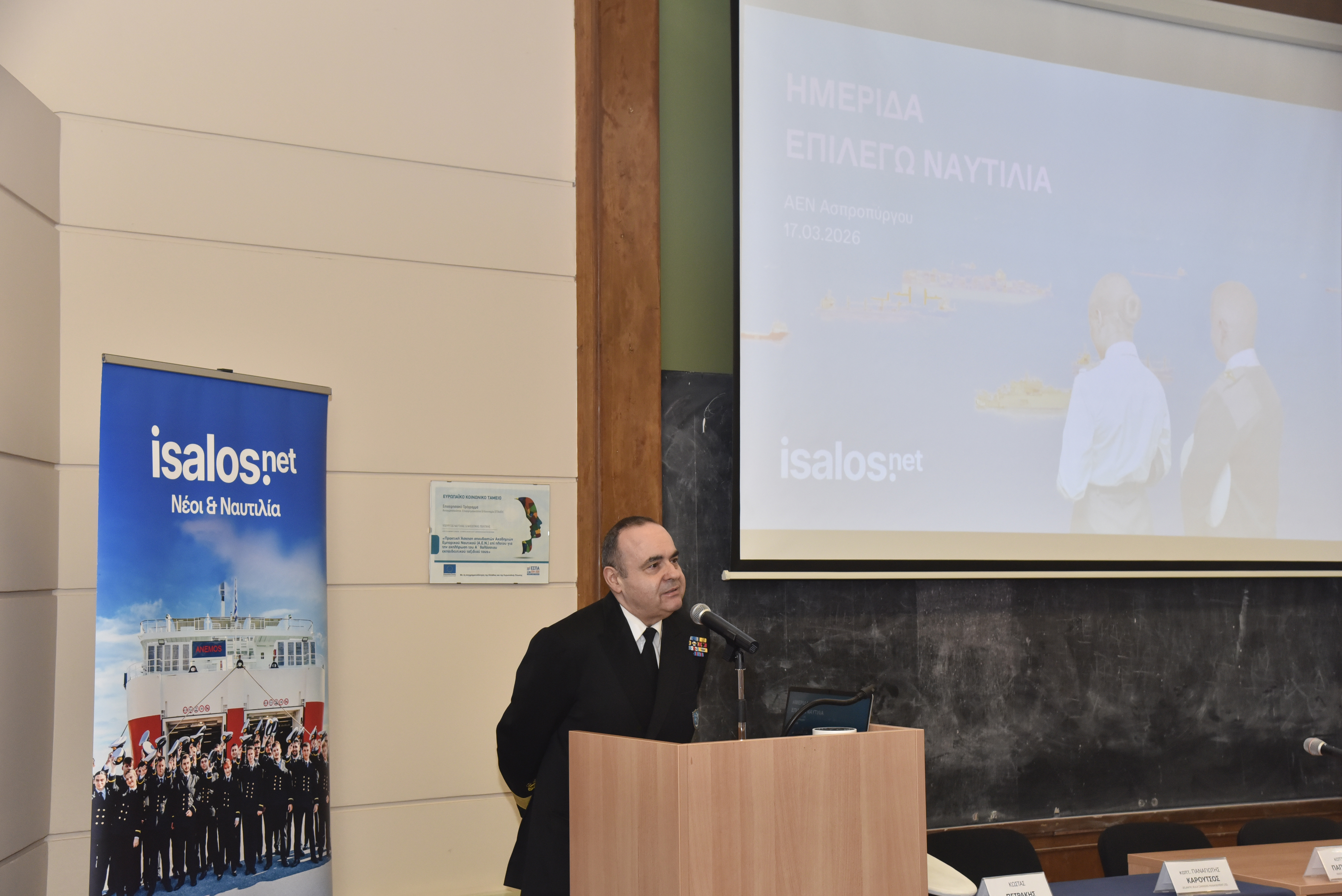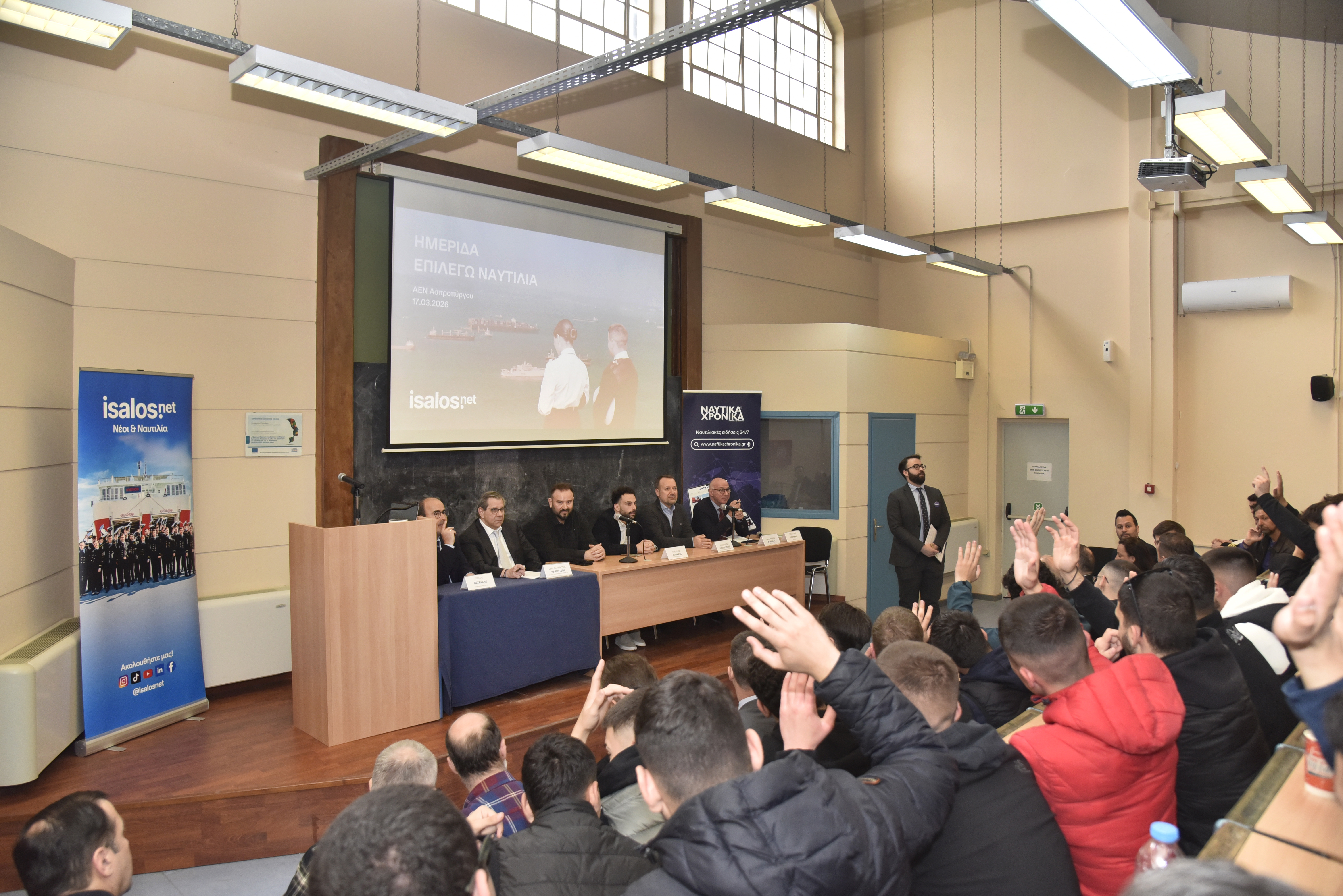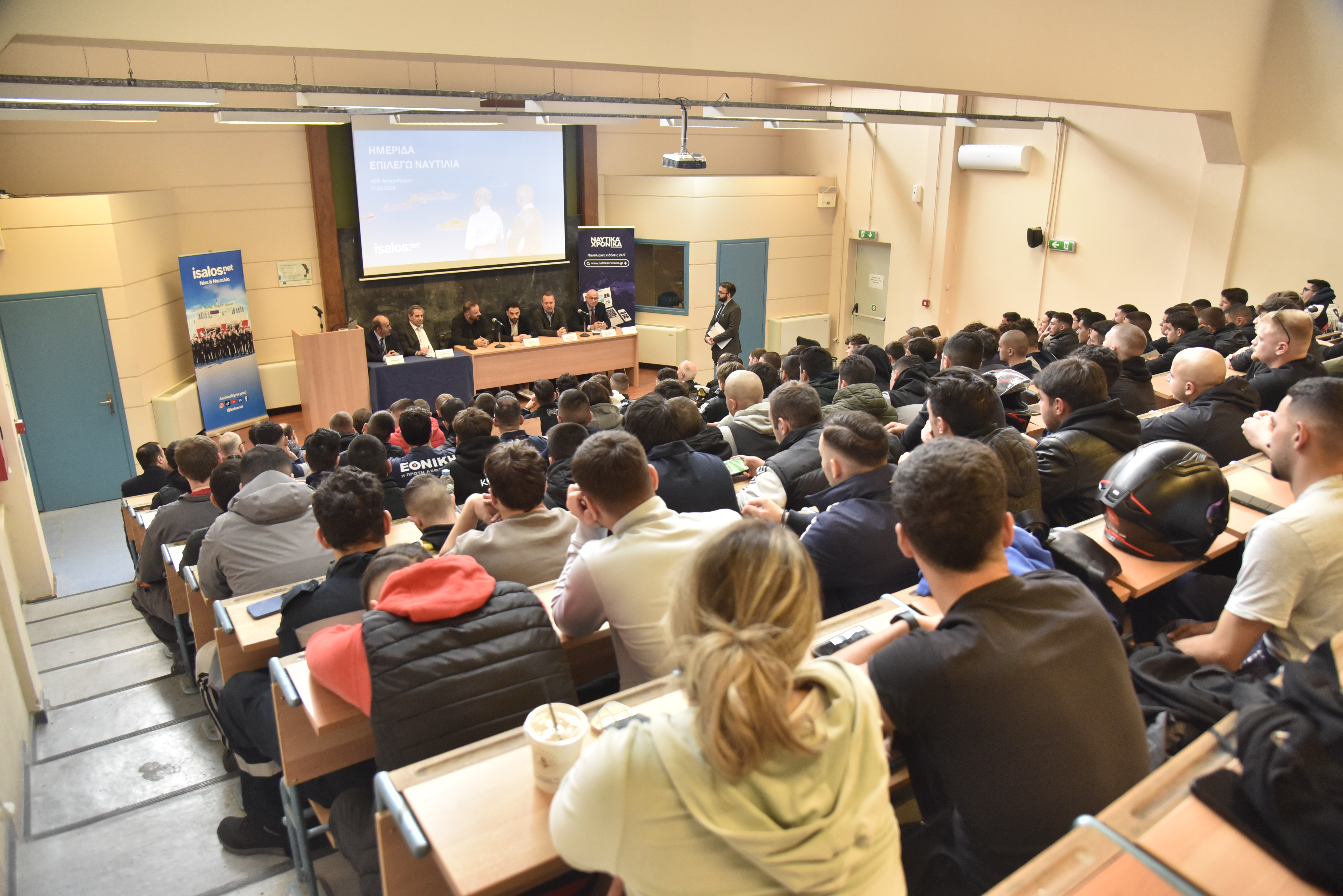 Οι εγκαταστάσεις της μεγαλύτερης Ακαδημίας Εμπορικού Ναυτικού της χώρας αποτέλεσαν τον επόμενο σταθμό των δράσεων της Isalos.net, που επικεντρώνονται στους σπουδαστές και στις σπουδάστριες των ΑΕΝ όλης της χώρας. Πιο συγκεκριμένα, την Τρίτη 17 Μαρτίου 2026 έλαβε χώρα η 38η κατά σειρά ημερίδα «Επιλέγω Ναυτιλία», η οποία έδωσε την ευκαιρία στους σπουδαστές και στις σπουδάστριες της ΑΕΝ Ασπροπύργου να συνομιλήσουν με εκπροσώπους της ελληνικής ναυτιλιακής κοινότητας.