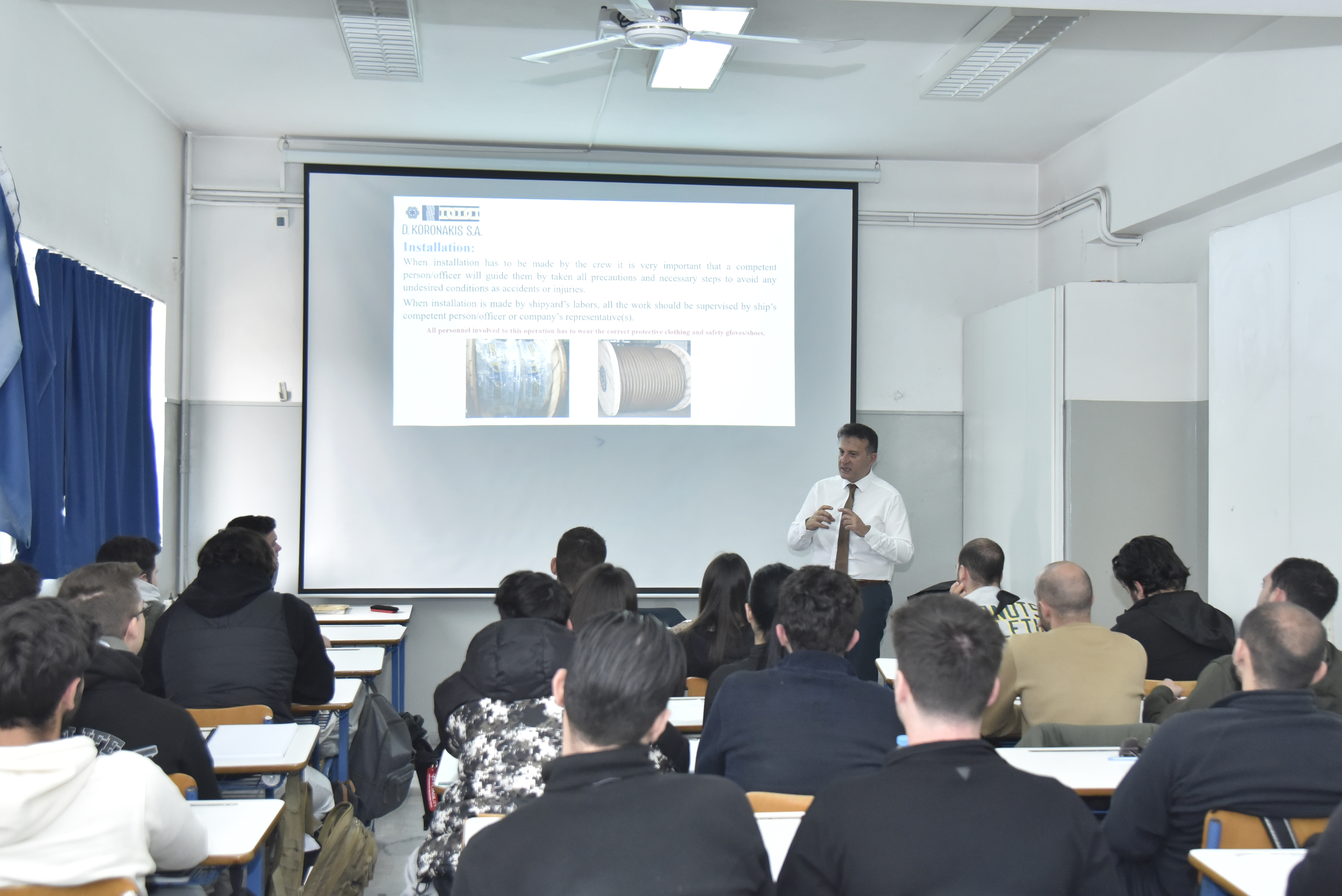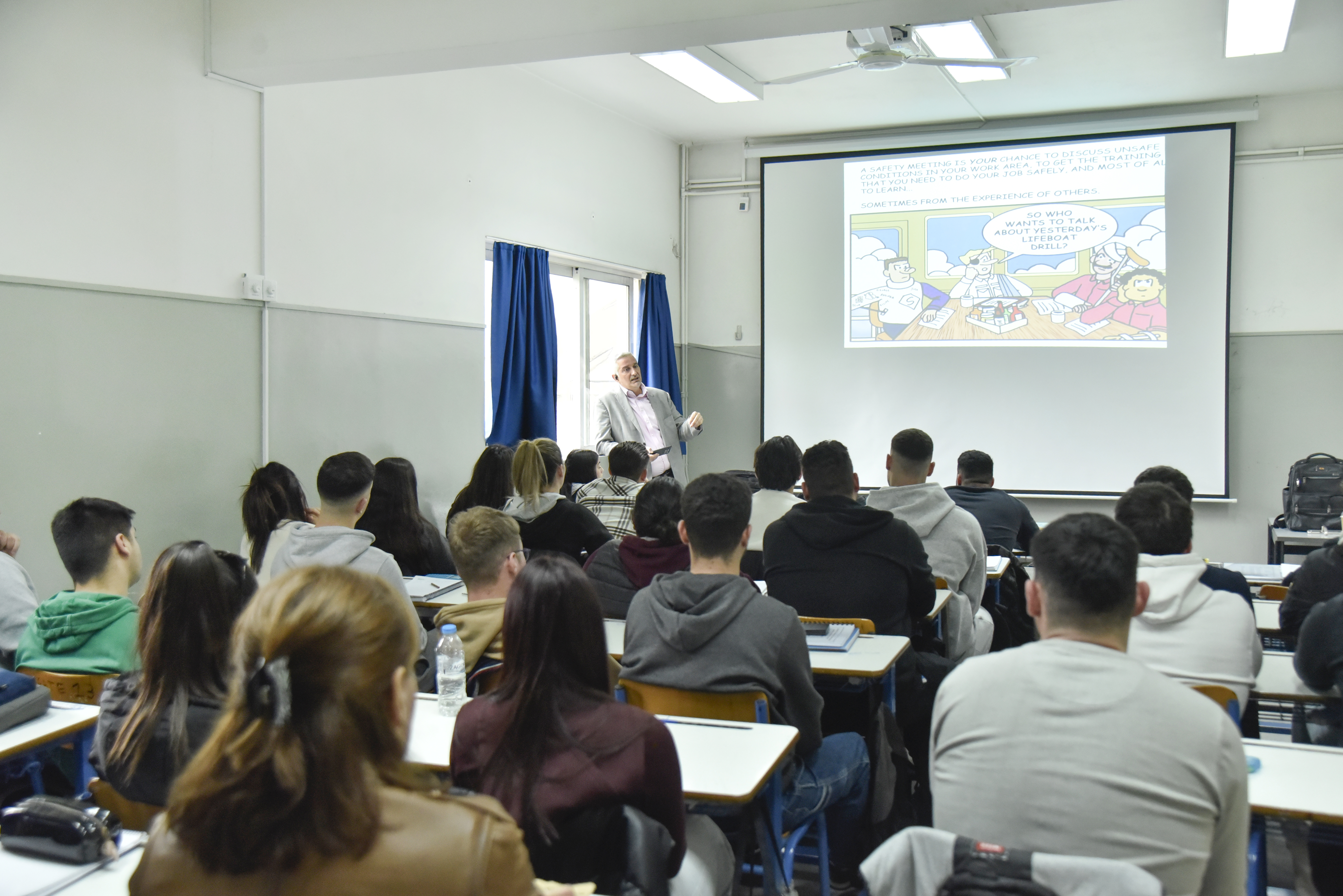 Οι εισηγητές των θεματικών ενοτήτων εστιάστηκαν σε ζητήματα που σχετίζονται με τις ευθύνες, τις υποχρεώσεις και τις προσδοκίες των δοκίμων από το πρώτο τους επαγγελματικό ταξίδι, ενώ παράλληλα αναδείχθηκαν πτυχές που αφορούν τη μελλοντική επαγγελματική τους πορεία σε βάθος χρόνου. Οι πρωτοετείς σπουδαστές και σπουδάστριες αξιοποίησαν την ευκαιρία και συμμετείχαν ενεργά στον διάλογο, θέτοντας πληθώρα ερωτημάτων αναφορικά με τις απαιτήσεις και τις ιδιαιτερότητες του ναυτικού επαγγέλματος.