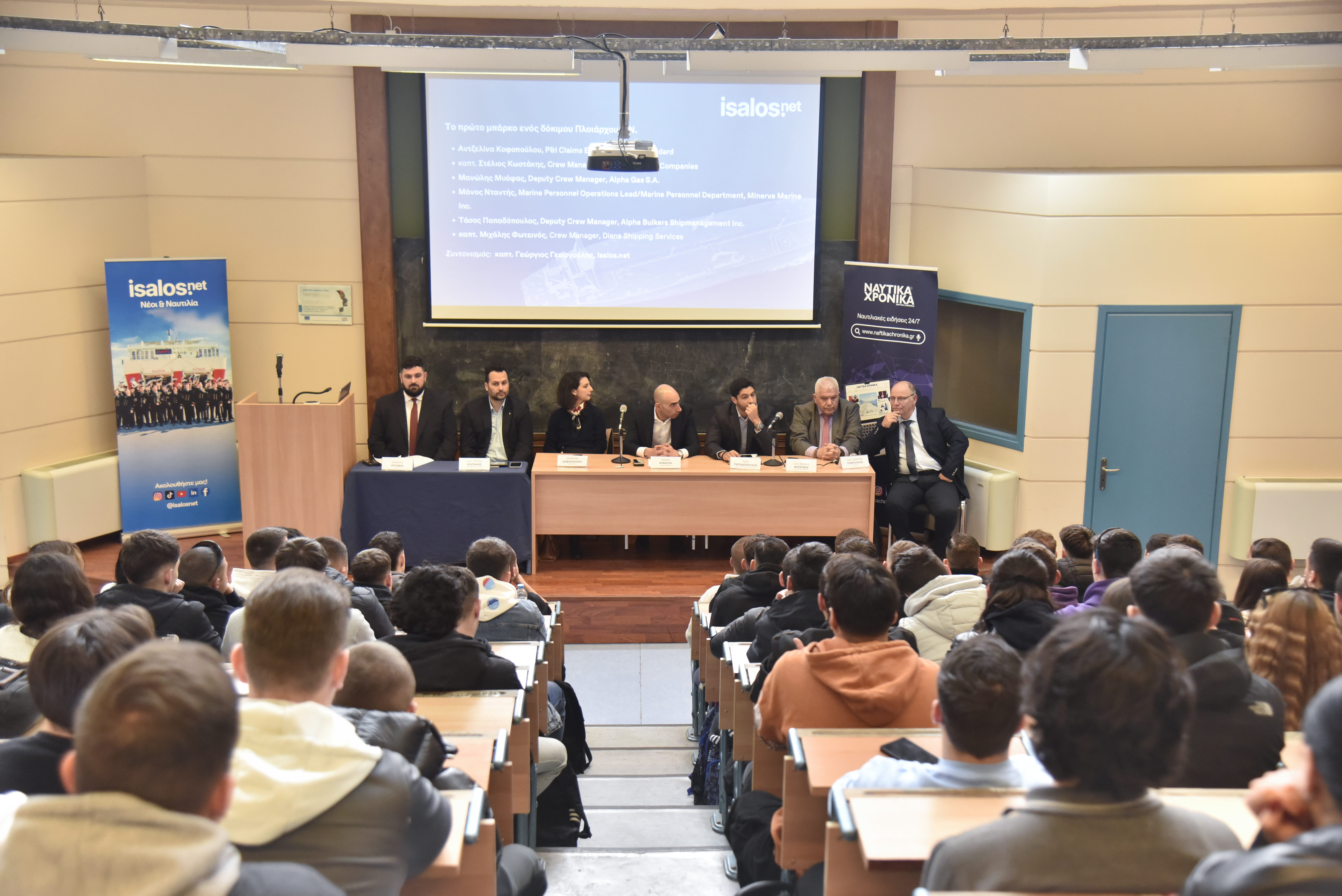 Υπενθυμίζεται πως οι ημερίδες «Επιλέγω Ναυτιλία», που διοργανώνονται συστηματικά και σε ετήσια βάση από την ομάδα της Isalos.net, πραγματοποιούνται με την πολύτιμη υποστήριξη της Διεύθυνσης Εκπαίδευσης Ναυτικών του ΥΝΑΝΠ, αλλά και των διοικήσεων και των διευθύνσεων των Ακαδημιών Εμπορικού Ναυτικού της χώρας.